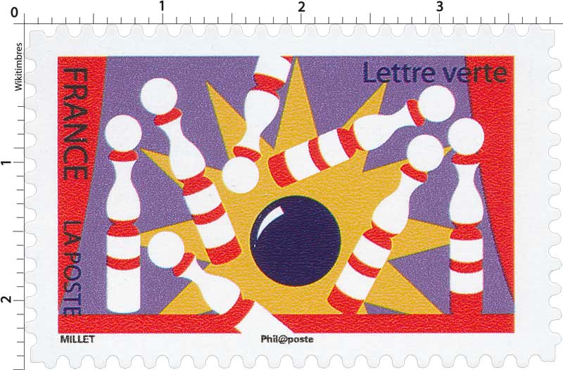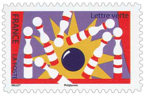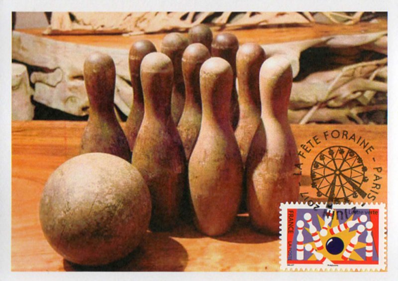 | Description | Provenant du carnet de timbres sur le thème de la fête foraine : Le jeu de quilles |