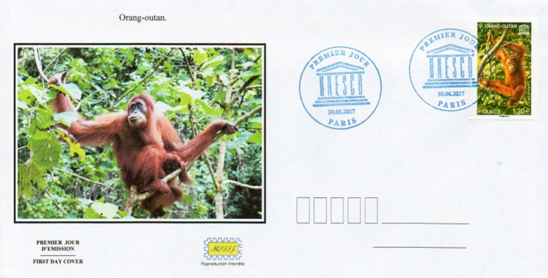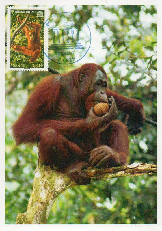 | Commentaire | En savoir plus sur Wikipédia : Orang-outan Visuel : un orang-outan dans un arbre, c'est le grand singe le plus arboricole des îles de Bornéo et Sumatra. Les orangs-outans ("Orang hutan", signifie "l'homme de la forêt") passent la majeure partie de leur temps dans les arbres des forêts primaires et secondaires, à la recherche de nourriture. Ce sont des créatures extrêmement intelligentes qui ont sans nul doute la capacité de raisonner et de réfléchir. Les similitudes que nous partageons avec eux sont : les bébés orangs-outans pleurent quand ils ont faim, ils pleurnichent quand ils ont mal et sourient à leur mère ; ils vivent et transmettent des émotions tout comme nous : joie, peur, surprise, mauvaise humeur... Ils sont peu agressifs, mais les grands mâles peuvent l’être, mais pour la plupart, ils se respectent entre eux. Ils sont arboricoles et se déplacent d’arbre en arbre, à l’abri des prédateurs qui les attendent au sol. Ils ne descendent au sol qu’en cas de nécessité. Si ce n’est pas le son des cris aigus d'un bébé, ou le cri-long d’un grand mâle, leur présence ne se remarque pas. A la préhistoire, les orangs-outans vivaient dans toute l'Asie, jusqu'au Nord de la Chine. Aujourd'hui, le déboisement et l'expansion humaine sont tels, que la forêt tropicale humide naturelle est réduite à quelques rares secteurs, à Bornéo et à Sumatra. Seules ces deux îles permettent encore à cette espèce de trouver des zones forestières assez grandes pour permettre sa reproduction viable. Malheureusement, même dans ces îles, la forêt disparaît rapidement. Durant les 50 dernières années, l’habitat naturel de l’orang-outan a été détruit par la croissance urbaine, les incendies, les plantations et l'agriculture. La prolifération de plantations des palmiers à huile, signifie la disparition de tous les orangs-outans sauvages. |
