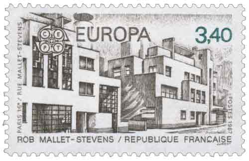 | Commentaire | Ce timbre appartient à l’émission EUROPA C.E.P.T. de 1987 consacrée au thème des arts modernes avec une priorité donnée à l’architecture, thème commun retenu par la Conférence européenne des administrations des postes et télécommunications afin de mettre en valeur des réalisations majeures de l’architecture contemporaine et moderne à l’échelle européenne. Pour la France, l’administration postale a choisi de représenter deux expressions complémentaires de cette modernité architecturale, dont l’une rend hommage à l’œuvre de Robert Mallet-Stevens à travers la rue parisienne qui porte son nom, située dans le 16ᵉ arrondissement. Ce timbre renvoie à une figure essentielle de l’architecture française de l’entre-deux-guerres, dont le travail se caractérise par une recherche de clarté, de fonctionnalité et de rigueur formelle, tout en s’affranchissant des dogmes modernistes les plus stricts de son époque. La rue Mallet-Stevens, conçue comme un ensemble cohérent mêlant immeubles collectifs, hôtels particuliers et ateliers, constitue l’une des expressions les plus abouties de cette démarche, où volumes géométriques simples, jeux de parallélépipèdes et de cylindres, larges baies et terrasses s’organisent avec une grande maîtrise. Ce timbre évoque ainsi une conception globale de l’architecture, dans laquelle l’architecte intervient aussi bien sur l’organisation urbaine que sur les détails intérieurs, assurant une continuité entre espaces extérieurs et intérieurs. En intégrant cette réalisation à la série EUROPA, l’administration postale française inscrit l’héritage de Mallet-Stevens dans une politique philatélique attentive aux grands courants architecturaux et à leur rôle dans la construction du paysage urbain européen. Ce timbre participe ainsi à une mise en perspective culturelle et historique de l’architecture moderne, en soulignant la contribution française à un mouvement partagé par trente-quatre organisations postales européennes lors de l’édition 1987. Article rédigé pour WikiTimbres |