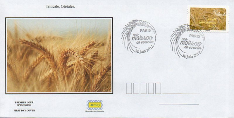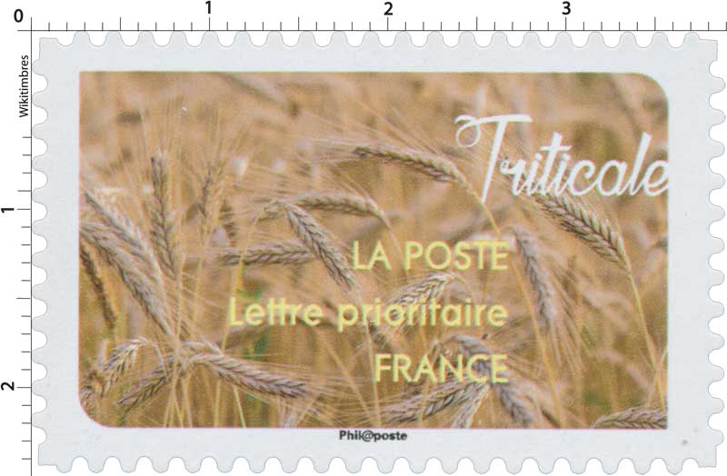 | Commentaire | En savoir plus sur Wikipédia : Triticale Triticale : c'est une plante annuelle de la famille des Poaceae. C'est un hybride artificiel (amphiploïde) entre le blé (dur ou tendre) et le seigle dont la culture s'est développée depuis les années 1960. Il est cultivé surtout comme céréale fourragère. Le nom "triticale" combine les noms latins de genre : du blé (Triticum) et du seigle (Secale). |