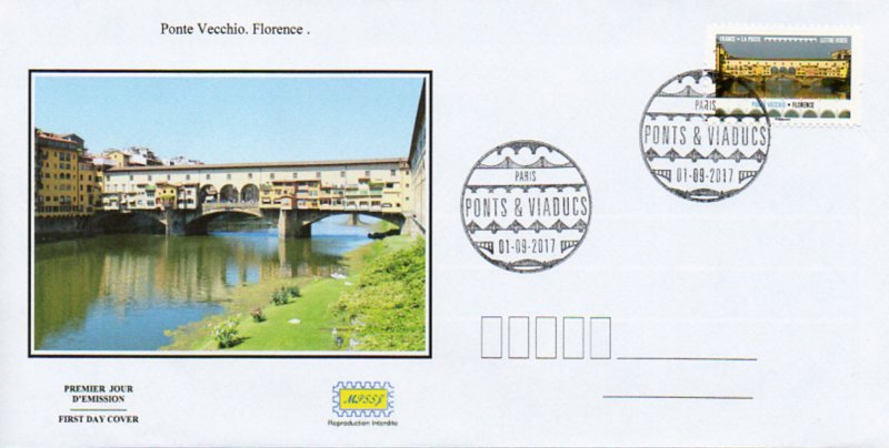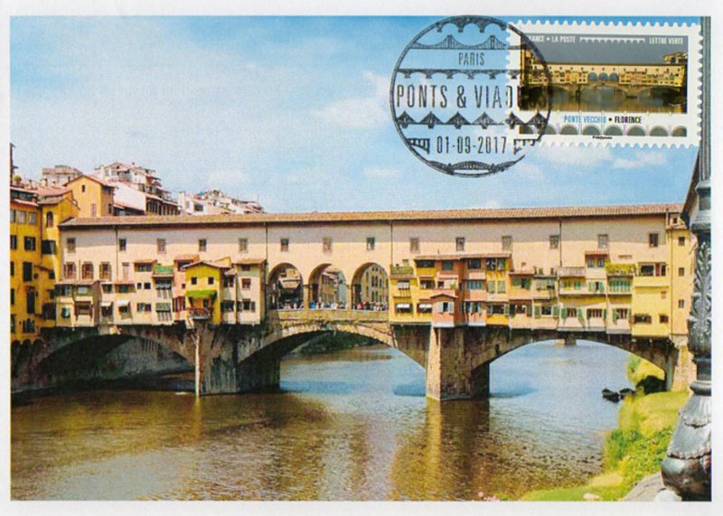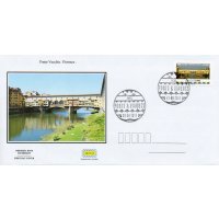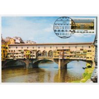 | Commentaire | En savoir plus sur Wikipédia : Ponte Vecchio Ponte Vecchio ou "Vieux pont" : c'est un pont urbanisé sur l'Arno, aux multiples échoppes, le plus ancien (XIVe siècle) et le plus célèbre lieu de vie de la ville de Florence, en Italie. La première construction d'un pont en bois remonte à l'époque romaine. Détruit en 1333 par une crue de l'Arno, le pont est reconstruit en pierre en 1345 par Neri di Fioravante (né ? – 1374, architecte) et Taddeo Gaddi (v.1290-1366, peintre, mosaïste et architecte) suivant certaines sources. Pour contenir l'Arno on va construire des quais maçonnés (lungarni). Les échoppes étaient initialement occupées par des bouchers, des tripiers et des tanneurs, bientôt remplacées, vers 1593, par la volonté de Ferdinand Ier de Médicis (1549-1609, cardinal et en 1587, grand-duc de Toscane) qui n'en supportait pas les odeurs fétides, par celles des joailliers et bijoutiers. Le "corridor de Vasari" fut construit en 1565, avec ses trois arches centrales. Grâce à lui, les Médicis pouvaient circuler sans danger, donc sans escorte, entre le Palazzo Vecchio (hôtel de ville), la galerie des Offices (palais du grand-duché de Toscane) et le palais Pitti (résidence principale des familles régnantes).Les "sporti" sont les supports qui ont permis la construction en surplomb des arrière-boutiques. La rue qui traverse le pont est de nos jours, un haut lieu de la joaillerie - orfèvrerie de la création de luxe à l'italienne. Technique : ancien pont romain en bois, reconstruit en pierre en 1080. Il devient le "Vecchio" (le vieux) en 1220, enjambant le fleuve Arno à Florence (Firenze, Toscane, Italie). Détruit lors d'une inondation importante, il est reconstruit en pierre et va supporter 43 échoppes / type : pont couvert en arc surbaissé (segmentaire) : 2 arches de 27 m et 1 arche de 30 m / matériaux : en maçonnerie – le centre historique de Florence est classé au P.M. Unesco depuis 1982.