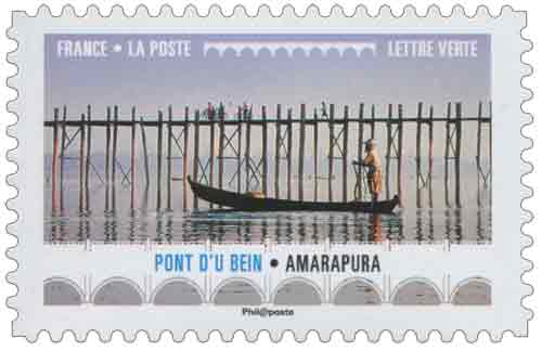 | Commentaire | En savoir plus sur Wikipédia : Pont d’U Bein Pont d'U Bein (Birmanie - région Sud de Mandalay) : c'est un pont de teck situé sur le lac Thaung Tha Man, dans l’ancien royaume d'Amarapura. Il a été réalisé à la demande du maire Mr. U Bein, avec des colonnes de teck des palais d'In Wa (Ava), abandonnées lors du transfert de la capitale à Mandalay. Il traverse le lac sur 1,2 km pour aboutir près du temple Kyauk Taw Gyi ("Grande Pierre", temple bouddhiste à l'architecture remarquable, 1853-1878), ce qui en fait l'un des plus longs ponts piétonniers en teck du monde. Le niveau du lac dépend fortement de la saison. En saison sèche, le niveau est bas, la superficie du lac est restreinte et la hauteur des piliers érodés par le temps, apparaît telle, de véritables sculptures. Depuis 1990, un barrage a été construit, et les piliers du pont demeurent en permanence dans un minimum d'eau. L'ouvrage a bénéficié d'une restauration en 2004. Technique : réalisé entre 1849 et 1851 / Long. 1 200 m (l'un des plus longs ponts piétonniers en teck du monde), larg. 4 à 5 m au miximum / matériaux : 824 piliers en teck, bois tropical précieux et imputrescible de la famille des Verbénacées, son nom "Thekku", en langue malayalam, d'Inde. |