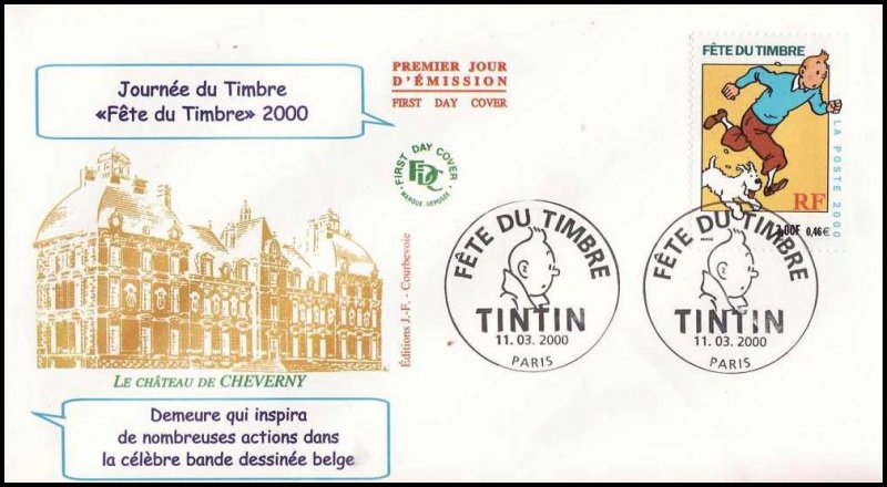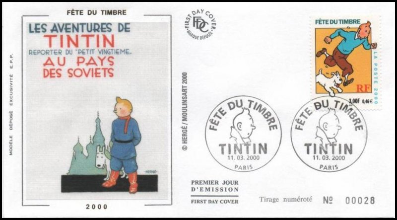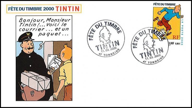 | Description | Fête du Timbre 2000 : Tintin et Milou, (© Hergé/Moulinsart 2000) sans surtaxe |