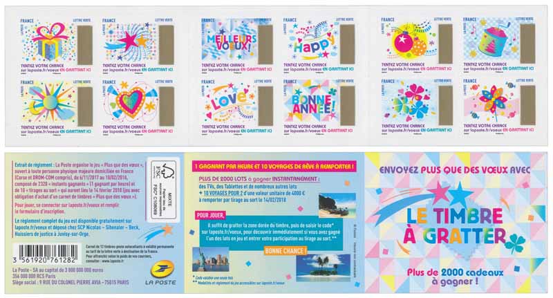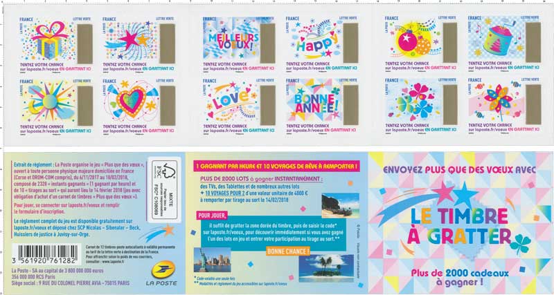 | Commentaire | Jeu ouvert sur le site internet www.laposte.fr/voeux du 06/11/2017 au 10/02/2018 2000 lots instantanés + 10 tirages au sort le 14 février 2018 Comment participer au jeu : "timbre à gratter" Cliquez-ici |