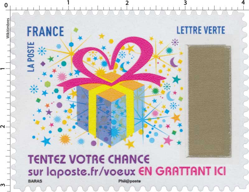 | Commentaire | Jeu ouvert sur le site internet www.laposte.fr/voeux du 06/11/2017 au 10/02/2018 2000 lots instantanés + 10 tirages au sort le 14 février 2018 Comment participer au jeu : "timbre à gratter" Cliquez-ici |