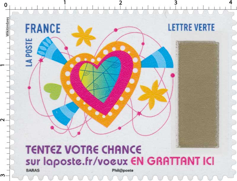 | Commentaire | Jeu ouvert sur le site internet www.laposte.fr/voeux du 06/11/2017 au 10/02/2018 2000 lots instantanés + 10 tirages au sort le 14 février 2018 Comment participer au jeu : "timbre à gratter" Cliquez-ici |