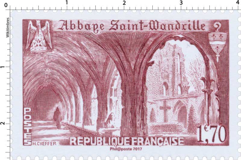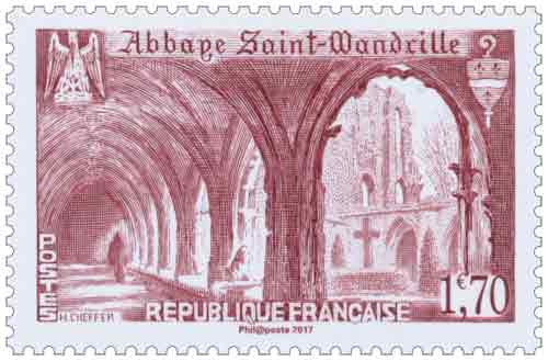 | Commentaire | Provenant du Bloc de 5 TP trésors de la philatélie 2017 Visuel : le cloître de l'abbaye (vers 1949) – le "Pélican symbolique" en pierre sculptée, situé au dessus de la porte d'accès (XVe s.) à l'avant-cour des bâtiments (à gauche) et le blason de la Porte de Jarente XVIIIe s. (à droite) Histoire : L'abbaye Saint-Wandrille, anciennement "abbaye de Fontenelle", est une abbaye bénédictine de la congrégation de Solesmes, située sur la commune de Saint-Wandille-Rançon ((Seine-Maritime - 76). Fondée vers 649 (jusqu'au XVIIIe s.), elle a connu une longue histoire, marquée par trois grandes périodes de saccages et de destructions : celles liées aux incursions des Vikings, puis celles engendrées par les guerres de religion, et enfin celles consécutives à la Révolution française. C'est encore aujourd'hui une abbaye de moines bénédictins (classée M.H. liste de 1862 / 1914 et 1995). |