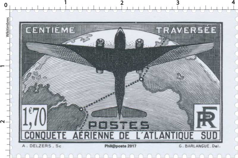 | Description | Réédition du timbre : 1936 - 100e traversée aérienne de l'Atlantique sud par les avions postaux français |