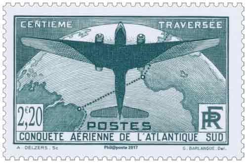 | Description | Réédition du timbre : 1936 - 100e traversée aérienne de l'Atlantique sud par les avions postaux français |
