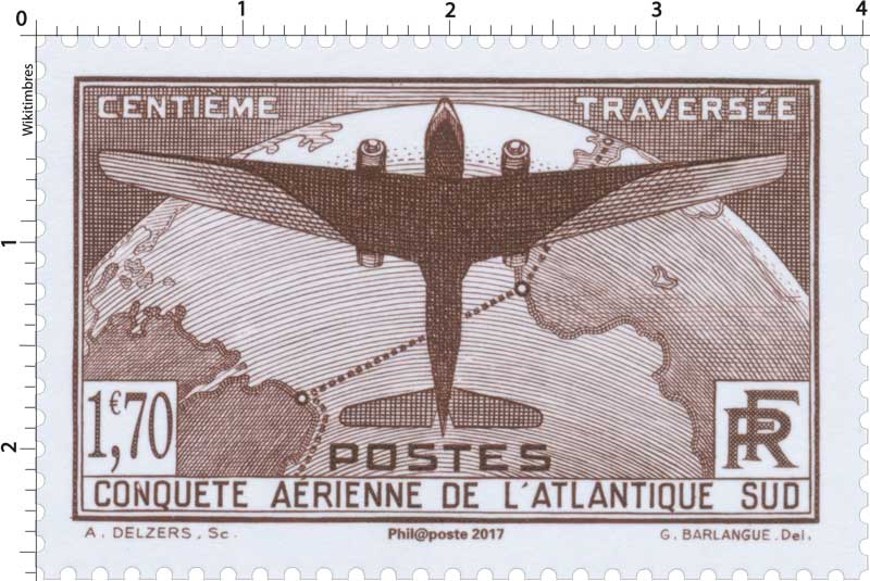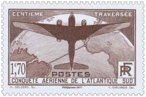 | Description | Réédition du timbre : 1936 - 100e traversée aérienne de l'Atlantique sud par les avions postaux français |