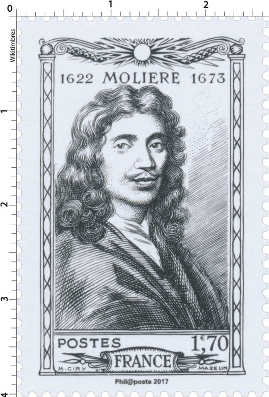 | Description | Réédition du timbre : 1944 - Jean-Baptiste Poquelin dit Molière (1622-1673) dramaturge et comédien, né à Paris |