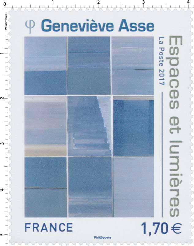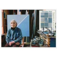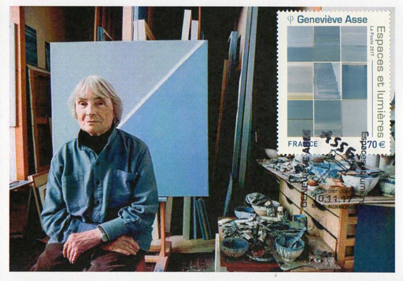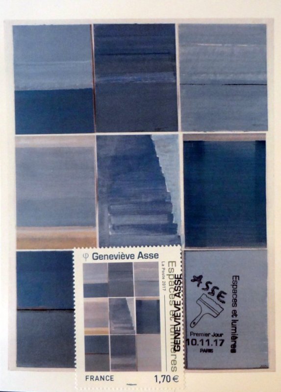 | Commentaire | Geneviève Bodin, dite "Geneviève ASSE", née le 24 janv.1923 à Vannes (56-Morbihan), est une artiste peintre et graveuse française, installée dans le golfe du Morbihan. 11 et 12 novembre : Les Pèse-Lettres et Balances Postales - Le coin du collectionneur (2ème année) L'histoire du courrier est indissociable de bon nombre d'objets comme les pèse- lettres et les balances postales. Au cours de son enfance, la liberté, selon Geneviève ASSE, se nomme solitude : en Bretagne, dans la presqu’île de Rhuys, confiée avec son frère jumeau, à sa grand-mère, elle s’immerge dans l’immensité des cieux et de la mer, et dans la vaste bibliothèque du manoir de Bonnervo. A Paris, elle découvre l'oeuvre de Jean Baptiste Siméon Chardin (1699-1779, peintre), et ressent une profonde intimité avec sa peinture. Ses premières natures mortes, attirée par des objets très simples, voient le jour en 1940. Lorsque la guerre éclate, sa liberté devient un idéal d'engagement : l’Union Nationale des Etudiants de France, les Forces Françaises de l'Intérieures ; puis la 1re Division Blindée, l’armée d’Afrique, elle devient conductrice ambulancière et à la libération, elle participe au rapatriement des Juifs français du camp de concentration de Terezín (République Tchèque). Elle recevra, pour son courage durant cette terrible période, la Croix de Guerre. Malgré les difficultés de cette période, elle continue à peindre, avec trois tubes de couleurs (noir, blanc, ocre), et rencontre en 1942 le collectionneur Jean Bauret, qui met à sa disposition un lieu lui permettant d'évoluer vers des paysages atmosphériques, pâles, gris ou nimbés de lumière. Alors que se dessine dans le blanc de la toile, l’horizon des mers connues dans sa jeunesse, s’ouvre la verticalité des "portes". Le motif tend à disparaître, dans la recherche d’un infini et s’ouvre également vers l’espace : c’est "l’ouverture" qui devient, dans les années 1970, le thème principal de son oeuvre. En savoir plus sur Wikipédia : Geneviève Asse |