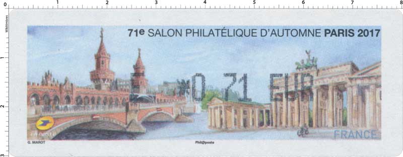 | Description | Vignette représentant : La ville de Berlin avec la porte de Brandebourg et le pont de l'Oberbaum |