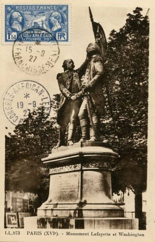 | Description | Visite de la Légion américaine. Buste de Lafayette, de Washington, le spirit of saint louis (l'avion de Charles Lindbergh), la statue de la liberté et le paquebot Paris |
