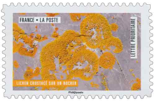 | Commentaire | Valeur faciale de chaque timbre : Lettre Prioritaire 0,95 € (nouveau tarif 2018) Les lichens (champignons lichénisés), sont des organismes composés résultant d'une symbiose (interaction directe de nature mutuellement bénéfique) entre au moins un champignon hétérotrophe (se nourrissant de matières organiques préexistants) appelé mycobionte, représentant 90 l'ensemble, et des cellules microscopiques possédant de la chlorophylle (algues vertes ou Cyanobactérie : autotrophe pour le carbone) nommées "photobiontes". Cette symbiose résulte d'une association (appelée lichénification ou lichénisation) entre le photobionte et un ou plus généralement deux champignons. Le thalle (corps végétatif non différencié) du lichen se développe lentement à la surface de supports variés, y compris dans des milieux souvent hostiles (exposition à la sécheresse, à de fortes températures, etc.). |