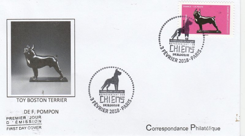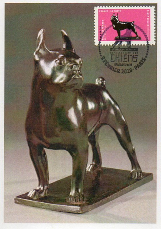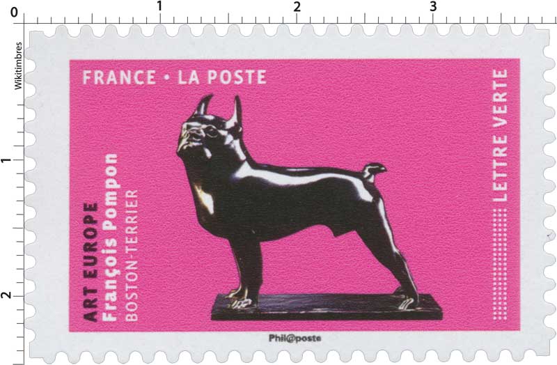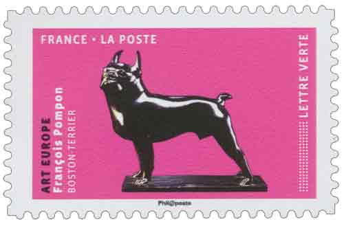 | Commentaire | Art d'Europe - François POMPON - le Boston Terrier © RMN-Grand-Palais (Saulieu, musée F. Pompon) / A. Morin / Gallimard Toy, Boston-terrier, chien de madame Georges Menier (création du modèle : 1930-32) - François POMPON (mai 1855-mai 1933, sculpteur et médailleur) - sculpture en bronze à patine noire brillante à nuances dorées. - Haut. : 30,9 cm, Larg. : 15,3 cm, Prof. : 32,5 cm - terrasse, avec signature Pompon et cachet C. Valsuani (fonderie) |