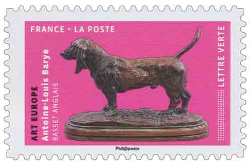 | Commentaire | Art d'Europe - Antoine-Louis BARYE - le Basset Anglais © RMN-Grand-Palais (musée du Louvre) / Tony Querrec Le basset anglais - par Antoine-Louis BARYE (sept.1796 - juin 1875, sculpteur et peintre) - épreuve de l’atelier de Barye (XIXe siècle), en bronze à patine brune - vers 1857. Haut. : 15 cm Larg. : 22 cm, Prof. : 8,5 cm - la terrasse ovale moulurée, avec signature dans le motif, côté gauche du chien - long. : 21,2 cm - larg. 8,7 cm - Haut. 15 cm |