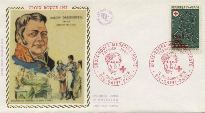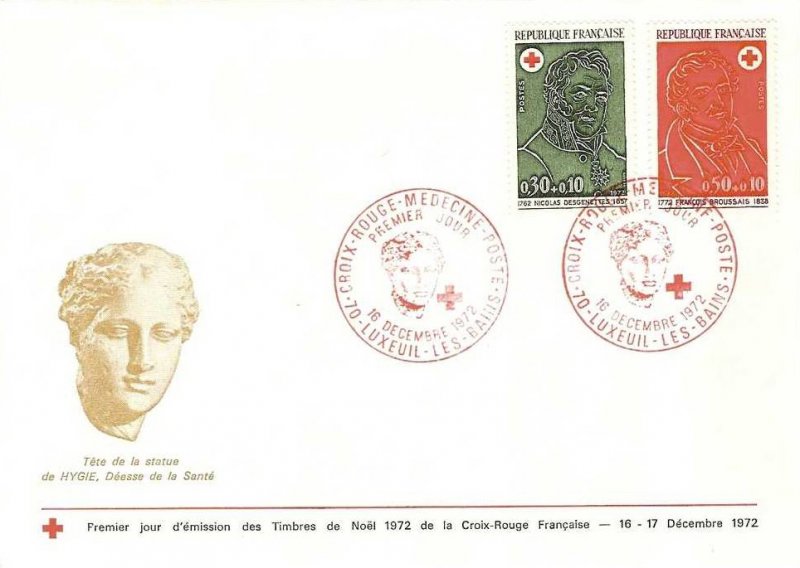 Les timbres de la série « Croix-Rouge » 1972 sont à l'effigie de deux illustres médecins du début du XIX· siècle: Desgenettes (1762-1837) et Broussais (1772-1838).