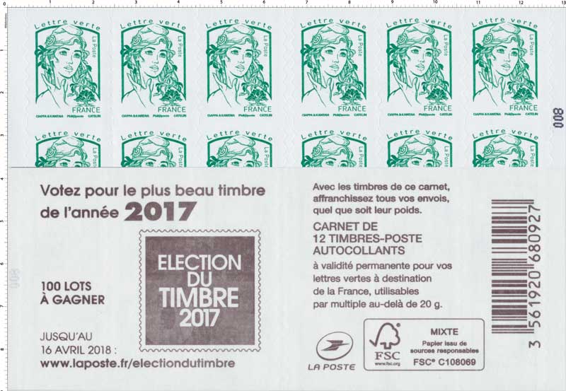 | Description | Carnet de 12 TP au tarif lettre verte |