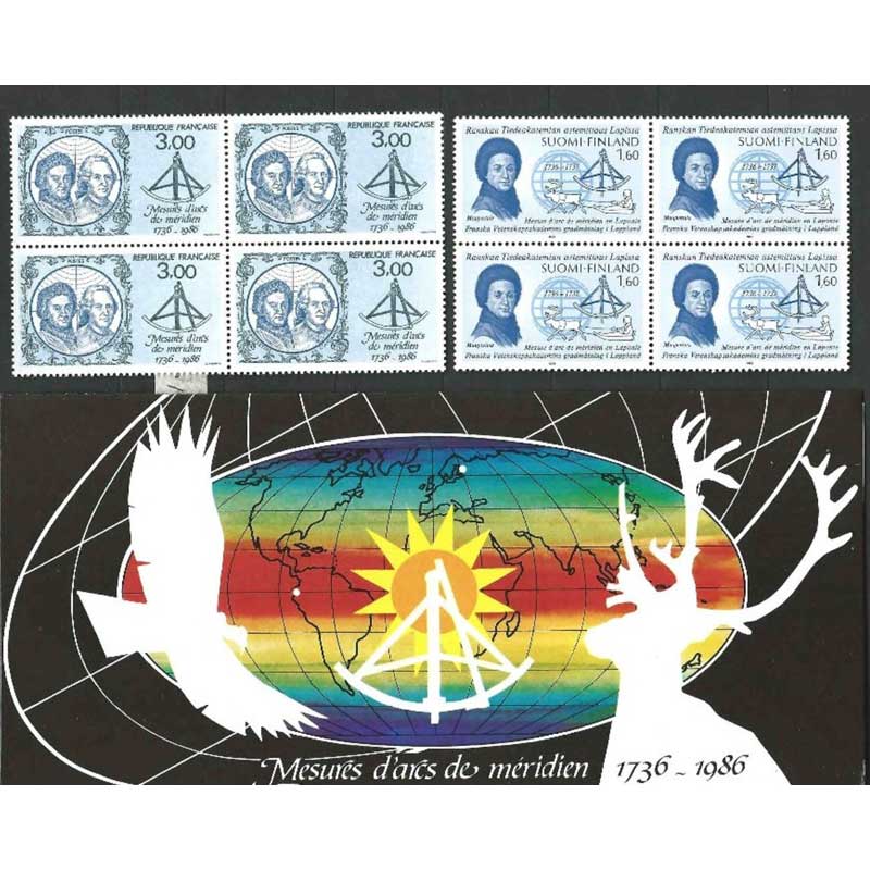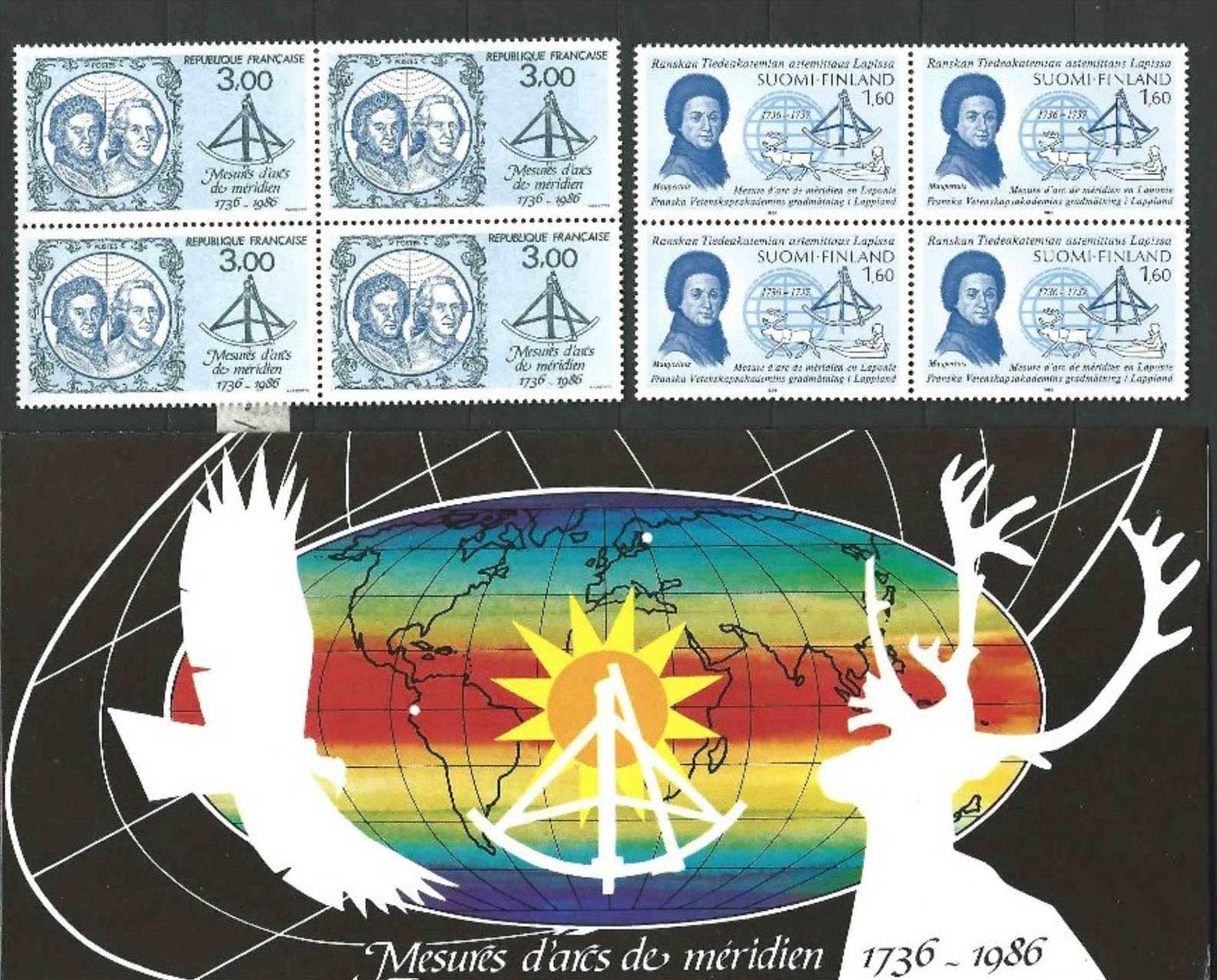 | Description | Émission commune France - Finlande : 250e anniversaire des mesures d'arcs de méridien, par Pierre Louis Maupertuis (1698-1759) né à Saint-Malo et Charles Marie de La Condamine (1701-1774), né à Paris |