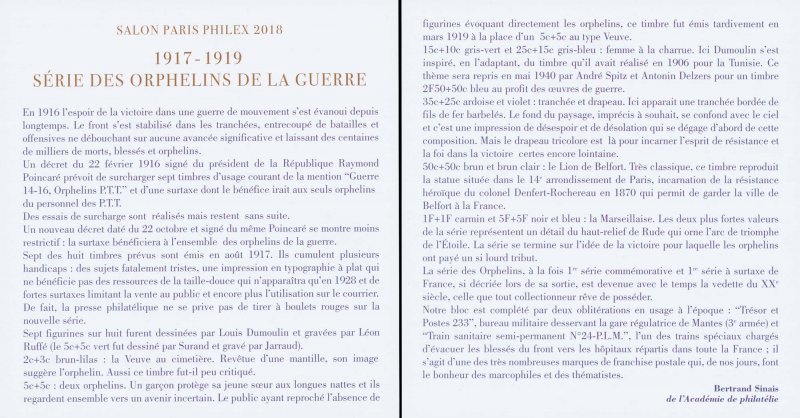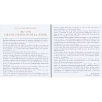 | Description | Bloc de huit timbres émis pour le salon Philex 2018 sur le thème de la commémoration de la première guerre mondiale |