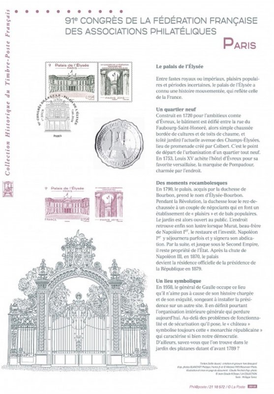 | Commentaire | Visuel : la Cour d'Honneur et l'entrée du palais de l'Élysée. et le portail de la Cour d'Honneur, entrée principale du Palais de l'Elysée - 55, rue du Faubourg Saint-Honoré. - Paris VIIIe ar En savoir plus sur Wikipédia : Palais de l'Élysée |