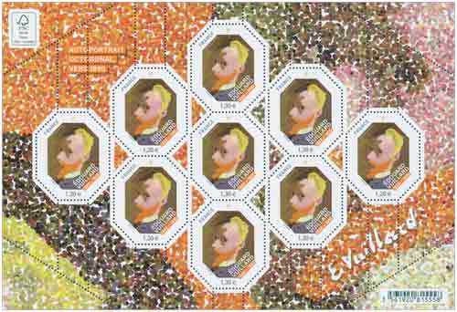 | Commentaire | En savoir plus sur Wikipédia : Édouard Vuillard Existe en deux versions : 1ère version: avec code barre 2ème version: avec numérotation (abonnés du programme philatélique) Jean Édouard VUILLARD, est né le 12 nov.1868 à Cuiseaux (71-Saône-et-Loire), et décède à La Baule (44 -Loire Atlantique) le 21 juin 1940. C'est un peintre, dessinateur, graveur et illustrateur français. Il est l'un des membres fondateurs du mouvement "nabi" (postimpressionnisme), Il s'illustre dans la peinture de figure, de portrait, d'intérieur, de nature morte, de scène intimiste, de composition murale et de décor de théâtre. En 1885, avec son ami François Xavier Roussel, dit Ker-Xavier Roussel (1867-1944, peintures et estampes), ils s'inscrivent au studio du peintre Diogène Ulysse Napoléon Maillart (1840-1926, grand prix de Rome en 1864). Ils y reçoivent les rudiments de l'enseignement artistique. Vuillard commence alors à fréquenter le musée du Louvre et se décide à suivre une carrière artistique. En mars 1886, il intègre l'Académie Julian (école privée de peinture et de sculpture, fondée à Paris en 1866 par Pierre Louis Rodolphe Julian, 1839-1907, peintre, graveur et professeur). En juin 1887, il est admis à l'École Nationale Supérieure des Beaux-Arts (fondée en 1817), et a pour enseignant Jean-Léon Gérôme (1824- 1904, peintre, sculpteur et professeur). En 1889, Maurice Denis (1870-1943, peintre, décorateur, graveur, théoricien et historien de l'art) le motive pour rejoindre un petit groupe dissident réalisant des œuvres empreintes de symbolisme et de spiritualité, la "confrérie des nabis". Paul Sérusier (1864-1927, peintre postimpressionniste) développe dans le groupe nabi un amour de la méthode synthétiste, qui repose sur la mémoire et l'imagination plus que sur l'observation directe. Vuillard, d'abord réticent à l'idée que le peintre ne cherche pas à reproduire de façon réaliste ce qu'il voit ; finit vers 1890, par s'essayer à ses premières œuvres, dans cette nouvelle réalisation artistique. |