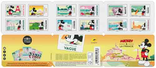 | Commentaire | (12 timbres “Lettre Verte” à 0,80 €) Célébration du 90e anniversaire de Mickey et ses liens privilégiés avec le public français. Le personnage intemporel et international de "Mickey Mouse" appartenant à l'univers "Disney" est né officiellement le 18 nov. 1928, date de la première présentation publique du dessin animé "Steamboat Willie". Il a été créé par Walter Elias Disney, dit "Walt Disney" (déc.1901-déc.1966, animateur, présentateur de télévision, scénariste, producteur, acteur, réalisateur, homme d'affaires). Mickey n’en finit pas de nous toucher par sa sympathie et son enthousiasme. La célèbre souris part à la découverte de la France, l’occasion de rapporter des polaroïds des villes, provinces ou régions qu’elle a visitée. Son voyage se décline au fil de 12 TVP, comme pour les 20 pièces de la "Monnaie de Paris", la plus ancienne institution de France, créée en 864 avec l’Édit de Pîtres (27-Eure - capitulaire du 25 juin 864, par Charles II dit "le Chauve", roi de Francie occidentale, 843 à oct.877). En savoir plus sur Wikipédia : Mickey |