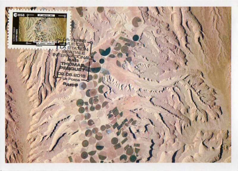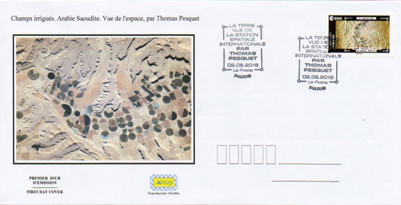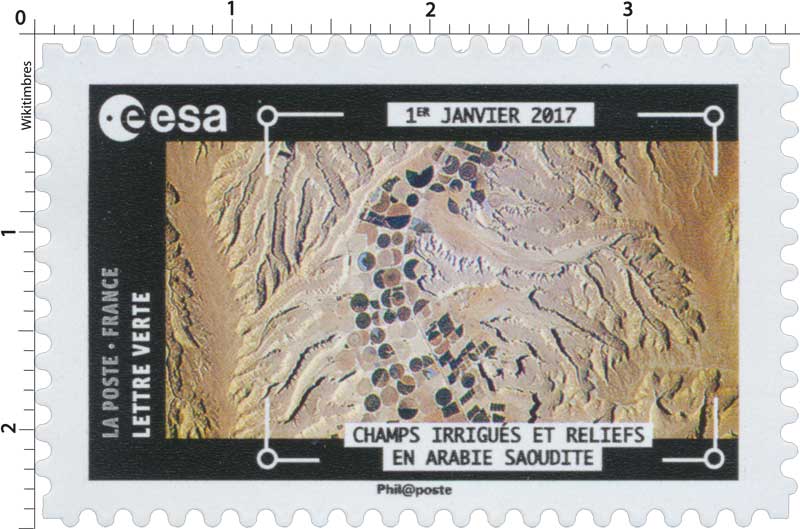 | Commentaire | 1er janvier 2017 : Champs irrigués et reliefs, en Arabie Saoudite : une belle illustration de ce que l'on nomme "l’irrigation à pivot central" (culture en cercle ou en carrousel) dans le désert, au centre du pays, à environ 200 km au Sud de Riyad. Un type de culture assez répandu et bien adaptée aux terrains plats (près de 1000 champs dans le pays). Ce type d'agriculture ne change rien aux graves problèmes environnementaux rencontrés dans les pays arides par les méthodes modernes et leurs productions intensives. |