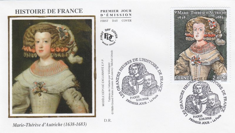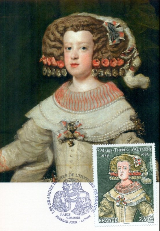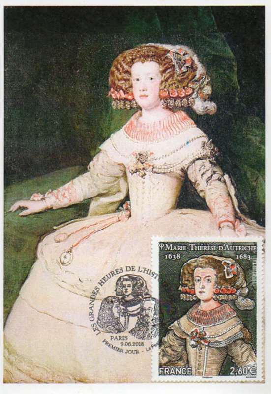 | Commentaire | En savoir plus sur Wikipédia : Marie-Thérèse d'Autriche (1638-1683) Représentation du visuel : Marie-Thèrèse d'Autriche 1638-1683, infante d'Espagne, reine de France et de Navarre, épouse de Louis XIV par le peintre attitré de la cour d'Espagne, Diego Vélasquez (1599-1660). d'après détail : © RMN-Grand Palais (musée du Louvre) / Michel Urtado