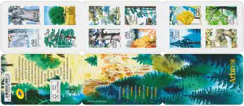 | Commentaire | Prix de vente du carnet : 11.40 € [12 timbres à 0.95 €] L’arbre représente une ressource vitale pour la société. Sans le couvert boisé de notre planète qui regroupe plus de 300 000 espèces végétales, la vie animale telle que nous la connaissons n'aurait jamais pu exister. S'adaptant continuellement à la dynamique naturelle de leur environnement, ces formes arborescentes ont rapidement envahi la presque totalité des terres émergées pour former les premières forêts. Le phénomène de la photosynthèse, dont seuls sont capables les végétaux, utilise l'énergie lumineuse pour convertir l'eau et le gaz carbonique en nourriture de base pour l'arbre (sucres) et en oxygène qui purifie l'air. Les arbres ont grandement favorisé l'avènement de la vie animale sur la terre. Les arbres et autres végétaux influent sur la qualité de l'air que nous respirons en agissant comme de véritables filtres à air. Les arbres permettent de stabiliser et de régulariser l'hydrologie du sol et le niveau de la nappe phréatique. Les forêts servent à emmagasiner et à purifier l'eau. Les arbres dégagent de la vapeur d'eau dans l'atmosphère par le processus de l'évapotranspiration. Ce phénomène influe sur le degré d'humidité locale et tempère les variations extrêmes du climat. Pour un développement durable : il y a plein de bonnes raisons à conserver les arbres, même et surtout en milieu urbain. |