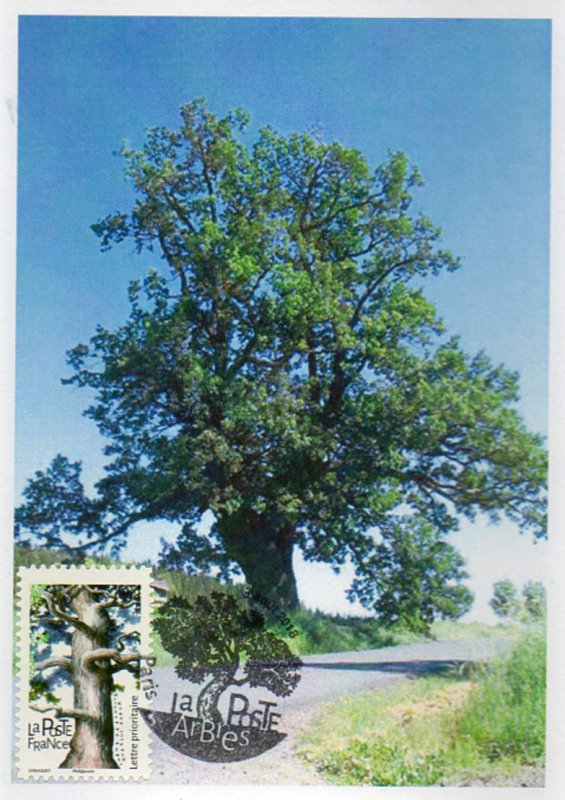 | Commentaire | Chêne pédonculé - Quercus robur : le chêne robuste est une espèce d'arbres à feuillage caduc appartenant à la famille des Fagacées. L'arbre est parfois appelé chêne blanc, chêne femelle, gravelin, chêne à grappe ou châgne. On compte plus de 550 espèces de chênes. Certains deviendront des arbres, d’autres resteront des arbrisseaux. Quand certains présenteront des feuilles caduques d’autres au contraire présenteront des feuilles persistantes : arbres, arbustes ou arbrisseaux, à feuilles caduques ou persistantes l'hiver. Roi des arbres, le chêne porte en lui tous les symboles de la puissance, la majesté et la pérennité. Pour beaucoup, il est synonyme d’espoir en la vie pour les générations futures. Cet arbre existe en forêt mais il est surtout remarquable lorsqu'il est isolé. Le chêne est en effet un arbre fragile pendant ses premières années de vie. Il a besoin de beaucoup d’eau et d’un environnement boisé pour se protéger des méfaits du soleil. Cet arbre, au houppier irrégulier, large et haut, peut atteindre 50 mètres de haut et 2 mètres de diamètre. Sa longévité est de 700 ans environ. Il existe cependant quelques arbres remarquables dont l'âge a été estimé à 1400 ans, voire 2000 ans. Son système racinaire est particulièrement développé et la racine maîtresse, pivotante, peut atteindre plusieurs mètres de profondeur. Ses branches massives et tortueuses naissent très bas sur le tronc et se terminent en rameaux rapprochés. Son écorce est de couleur grise, lisse dans les premières années de croissance, elle laisse apparaître des sillons longitudinaux de plus en plus profonds à partir de 20 ou 30 ans. Ses feuilles simples, alternes, de 7 à 15 cm de long et d'environ 8 cm de large, ont une forme ovoïde. Elles sont découpées en 5 à 7 paires de lobes arrondis asymétriques, séparés par des sinus relativement profonds. De couleur vert foncé sur le dessus, elles présentent une coloration plus pâle en dessous. La base du limbe est étroite et comporte 2 petits lobes en oreillettes. Les glands (fruits, fructification en septembre et octobre) sont des akènes contenant une seule graine. |