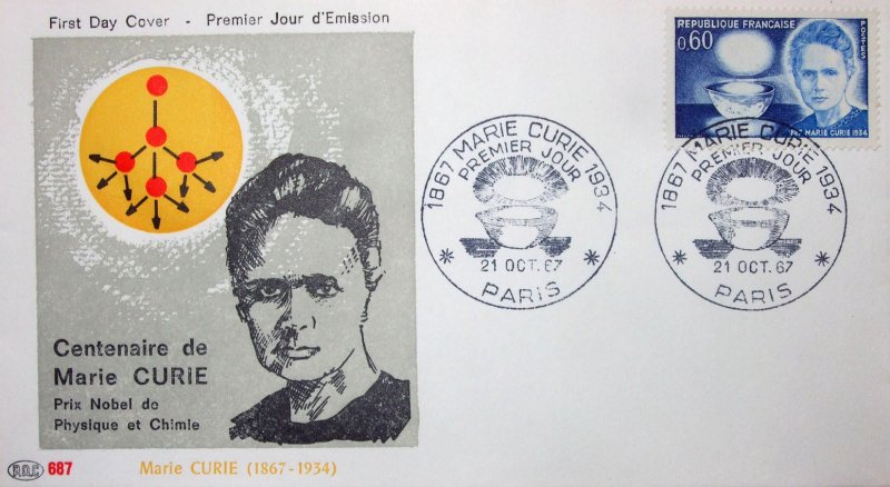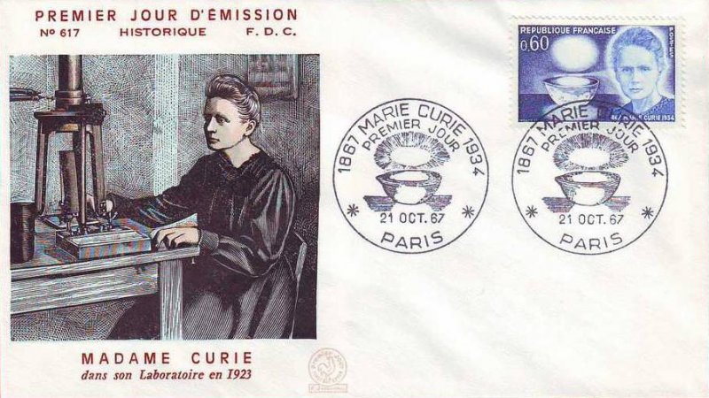 | Description | Centenaire de la naissance de Marie Curie (1867-1934), morte à Passy (Haute-Savoie) |