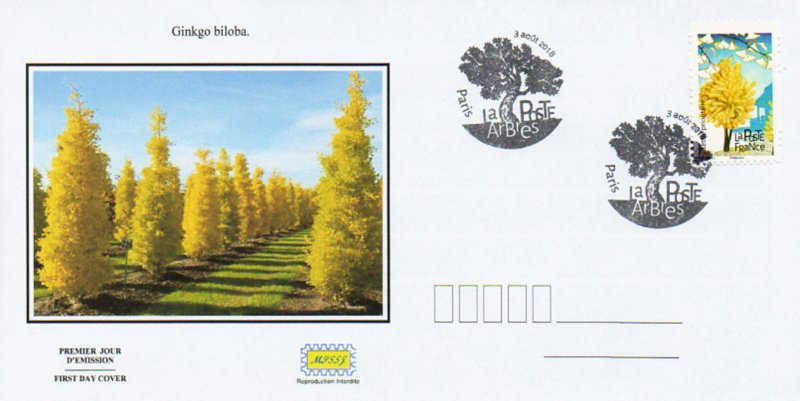 | Commentaire | Ginkgo biloba : l’arbre aux quarante écus, l’abricotier d'argent ou Ginkgo, est une espèce d'arbres et la seule représentante actuelle de la famille des Ginkgoaceae. C'est la seule espèce actuelle de la division des ginkgophyta. Elle est considérée comme une espèce panchroniquenote. C'est la plus ancienne famille d'arbres connue, puisqu'elle serait apparue il y a plus de 270 millions d'années. Elle existait déjà une quarantaine de millions d'années avant l'apparition des dinosaures. L'apparition du Ginkgo biloba remonte à près de 300 millions d'années - soit à une époque où la terre commençait à se peupler de dinosaures. La famille des ginkgoacées était alors immense et s'étendait sur tout l'hémisphère Nord jusqu'en Inde et en Australie. Il est aujourd'hui le dernier représentant de cette famille. |
