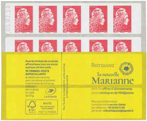 | Description | Carnet de distributeur de 10 timbres-poste autoadhésifs « Marianne l’engagée » Lettre prioritaire |