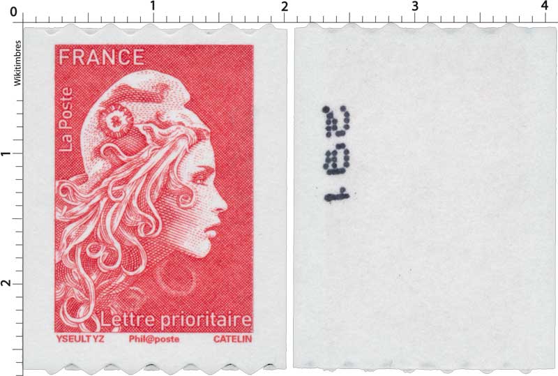 | Description | Timbre autoadhésif en roulette Marianne lettre prioritaire 20g rouge TVP |