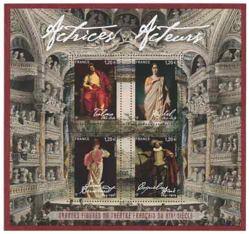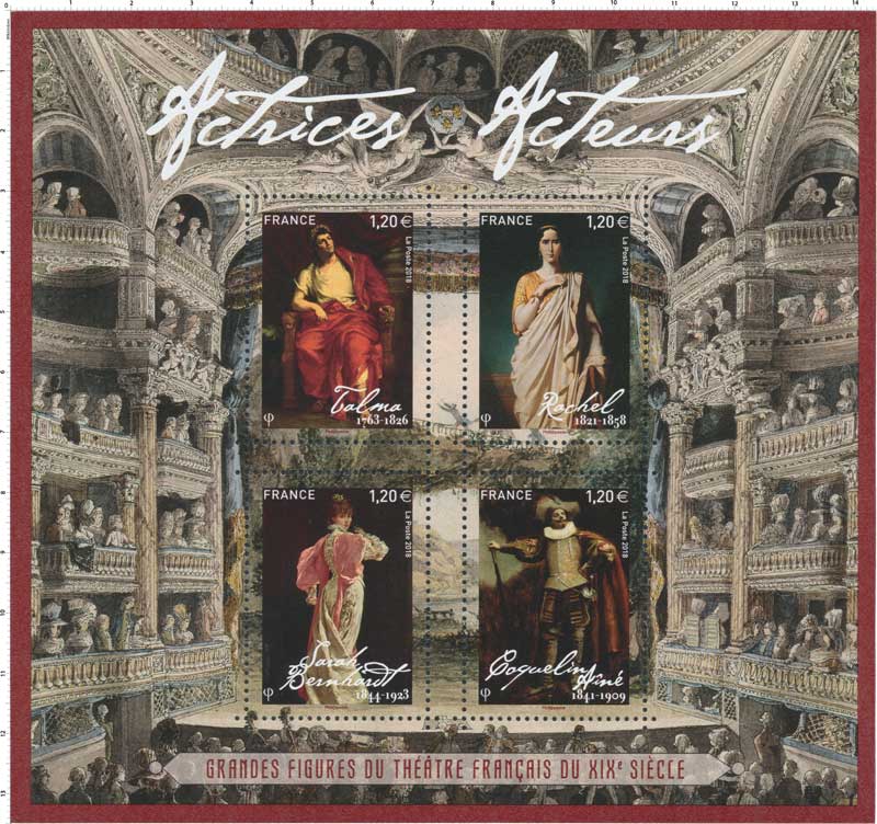 | Description | Vue intérieure de la Comédie française, au centre quatre tableaux représentant Rachel, Sarah Bernhardt, Coquelin Aîné et Talma |