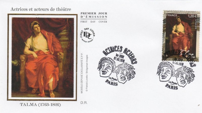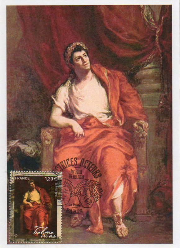 | Commentaire | François-Joseph TALMA (Paris le 15 janv.1763 / 19 oct.1826) : il fut l'un des meilleurs interprètes de tragédies de l'histoire du théâtre, le plus prestigieux de son époque, suivant en cela Henri-Louis Caïn, dit Lekain (1729-1778, tragédien). En 1776, il se rend en Angleterre pour retrouver son père, devenu dentiste à Londres. Mais son avenir sera plutôt influencé par la découverte du théâtre élisabéthain que par le métier de chirurgien dentiste. En Angleterre, il joue en amateur. Rentré en France, en 1785, il s'établit dans sa spécialité médicale. Talma s'inscrit à la fondation de l'École royale de déclamation en 1786, abandonnant le métier de dentiste. Il débute à la Comédie française en 1787 dans "Le Fanatisme", ou "Mahomet" (1736 / avril 1741), puis il y joue "Brutus" (déc.1730) et "La Mort de César" (1736), des tragédies de François-Marie Arouet, dit Voltaire (nov.1694 - mai 1778, philosophe, conteur, poète, dramaturge et historien). Il crée "Charles IX et la Saint Barthélémy", pièce rebaptisée "Charles IX, ou l’Ecole des rois" (nov.1789) de Marie-Joseph Blaise de Chénier (août 1764 - janv.1811, homme politique, dramaturge, poète, écrivain et traducteur). C'est un immense succès public, mais l'Église fait interdire la pièce à la 33e représentation, mais le 21 juil.1790, la pièce est jouée malgré l'interdiction. La troupe de la Comédie-Française se divise alors entre les "révolutionnaires" avec Talma et les "autres sociétaires" qui refusent de jouer avec lui. Il s'engage de plus en plus politiquement, n'a pas de grandes affinités avec Maximilien Marie Isidore de Robespierre (mai 1758- juil.1794, avocat), mais se lie d'amitié avec un jeune militaire : Napoléon Bonaparte (15 août 1769 - 5 mai 1821, lieutenant, à cette époque). Talma et ses partisans, sont exclus de la Comédie-Française en 1791 et vont se réfugier dans un nouveau théâtre, la "Salle Richelieu" (architecte : Louis-Nicolas Louis, dit Victor Louis (mai 1731 - juil.1800), dans le Palais-Royal (construit en 1628). La salle prend vite le nom de "Théâtre de la République", et quand les "comédiens-français" sont emprisonnés en sept.1793, on accuse Talma d'avoir comploté contre eux. En savoir plus sur Wikipédia : François-Joseph Talma |