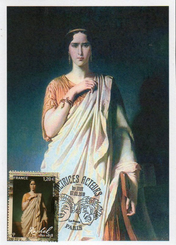 Élisabeth-Rachel FELIX, dite Rachel ou Mlle Rachel, est une tragédienne, née le 21 fév.1821 à Mumpf (Suisse) et décède le 3 janv.1858 au Cannet (06-Alpes-Maritimes), elle fut un modèle pour Sarah Bernhardt. Elle a vécu une partie de sa jeunesse à Hirsingue (68-Ht-Rhin). Après avoir chanté, récité et mendié dans les rues des villes que ses parents traversent avant leur arrivée à Paris. Élisabeth-Rachel FELIX suit les cours d'Alexandre-Étienne Choron (1771-1834, musicologue et théoricien de musique) et de Pierre-Jacques Porlier-Pagnon, dit Saint-Aulaire (1793-1864, acteur et 240e sociétaire de la Comédie-Française), et prend quelques cours d'art dramatique au Conservatoire. Pour subvenir aux besoins de sa famille, elle débute en janv.1837 au théâtre du Gymnase. Charles-Gaspard Poirson, dit Delestre-Poirson (1790-1859, auteur dramatique et directeur), lui fait prendre comme nom de scène "Rachel", qu'elle adopte également dans sa vie privée. Auditionnée en mars 1838, elle entre au Théâtre-Français à l'âge de 17 ans, son succès est immédiat. Elle débute dans le rôle de "Camille, soeur d'Horace", dans la pièce "Horace" de P. Corneille (créée en1640). Alors qu'elle débute analphabète, son interprétation des héroïnes des tragédies la rendent célèbre et adulée, et remettent à la mode la tragédie classique, face au drame romantique. Elle créa un modèle nouveau d'actrice et de femme et fut une des femmes les plus célèbres de son siècle. Elle fut ainsi portraiturée, entre autres, par Jean-Auguste Barre, dit Auguste Barre (1811-1896, sculpteur, médailleur et 20e graveur de monnaies).