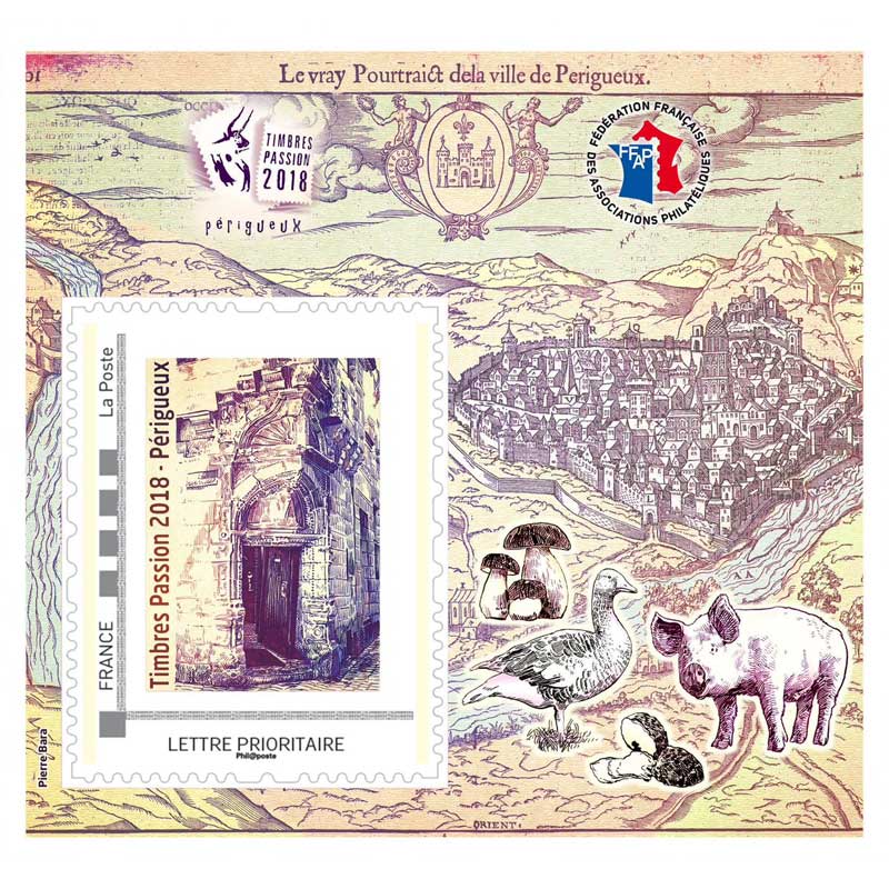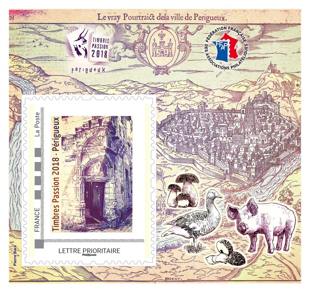 | Description | Gravure ancienne de François Belleforest, datant de 1575 : "Le vray pourtraict de la ville de Périgueux." Le timbre représente une "Porte renaissance du XVIe siècle, la Maison du Pâtissier, Rue Saint-Louis à Périgueux". |
