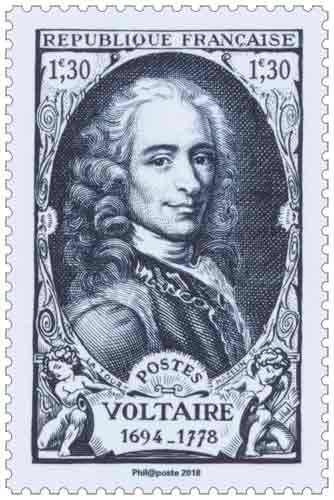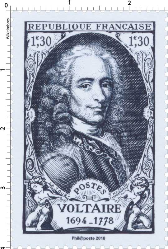 | Description | Provenant du bloc feuillet : François Marie Arouet, dit Voltaire (1694-1778), écrivain et philosophe, né à Paris |