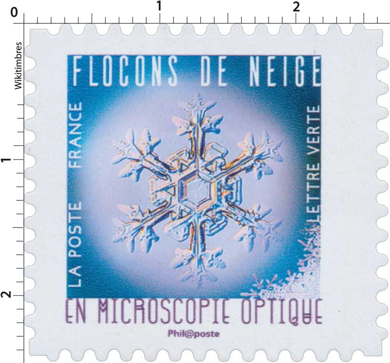 | Description | Provenant du carnet de timbres illustré par des flocons de neige vus en microscopie optique |