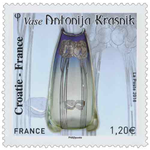 | Description | Émission commune Croatie - France, représentation d'un vase d' Antonija Krasnik (Lovinac, 1874 - Zagreb, 1956), peintre et sculpteure, artiste polyvalente de renommée internationale, formée à Vienne. Elle a fréquenté la Kunstgewerbeschule of Koloman Moser, où elle a attiré l'attention pour la haute qualité de ses œuvres. |