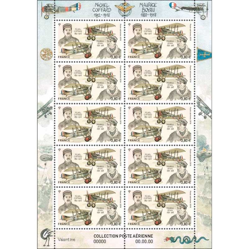 | Commentaire | En savoir plus sur Wikipédia : Michel Coiffard En savoir plus sur Wikipédia : Maurice Boyau Mini-feuille de 10 timbres-poste avec marges illustrées, présentée avec marie-louise et sous blister. |