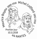 | Description | Représentation de deux as de l'aviation de la Première Guerre mondiale : Michel Coiffard né à Nantes et Maurice Boyau né à Sidi M'Hamed (Algérie) |