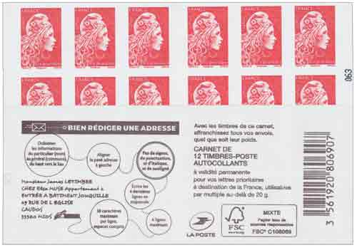 | Description | Carnet de 12 TP prioritaire Service National de l'Adresse |