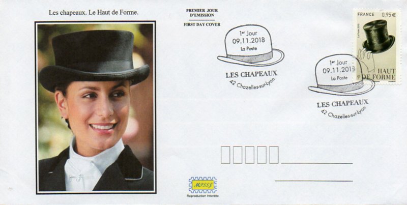 | Commentaire | Haut de forme : le classique par excellence, c'est un chapeau à calotte haute et cylindrique qui se porte généralement avec la redingote ou l'habit. Il passe, dans les années 1810, d'une simple nouveauté de la mode à un symbole de la condition sociale de l'homme bourgeois. En raison de sa hauteur et de son allure imposante, il confère une certaine élégance à l'homme, qu'il fait paraître plus grand. Le haut-de-forme en vient à symboliser la respectabilité, la richesse, la dignité et un rang social élevé. Toujours considéré, à la fin du XIXe siècle, comme un symbole de distinction, le haut-de-forme en vient même à faire partie de l'uniforme du policier, du facteur et de l'employé de chemin de fer. Peluche de soie, tissu (gros-grain, satin) - H. 15.5 cm ; long; 29.8 cm ; larg; 24.5 cm En savoir plus sur Wikipédia : chapeau |