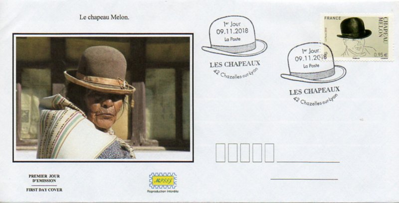 | Commentaire | Chapeau melon : c'est un chapeau de feutre dont la calotte, semi sphérique, est ceinturée d’un gros‐grain. Considéré comme négligé à ses débuts vers 1863, il gagne petit à petit une place d’honneur dans le vestiaire masculin en remplaçant le haut‐de‐forme. Porté à la ville avec un complet, il peut être gris avec une tenue plus habillée. Après la Seconde Guerre mondiale, le chapeau melon disparaît, il est remplacé par le feutre mou. Le chapeau melon reste le symbole de la bourgeoisie et du monde de la finance. Mais qui seraient Charlie Chaplin, les frères Jacques ou Laurel et Hardy sans leur chapeau melon. Feutre de poil ras, tissu (gros-grain, satin pour la coiffe), cuir H. 13.5 cm ; long. 30.2 cm ; larg. 24.5 cm En savoir plus sur Wikipédia : chapeau |