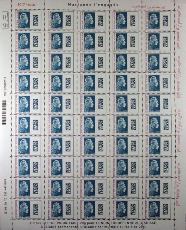 | Description | Fin de commercialisation le 31 décembre 2018 des timbres « Marianne l’engagée » Europe et Monde, émis le 20 juillet dernier |