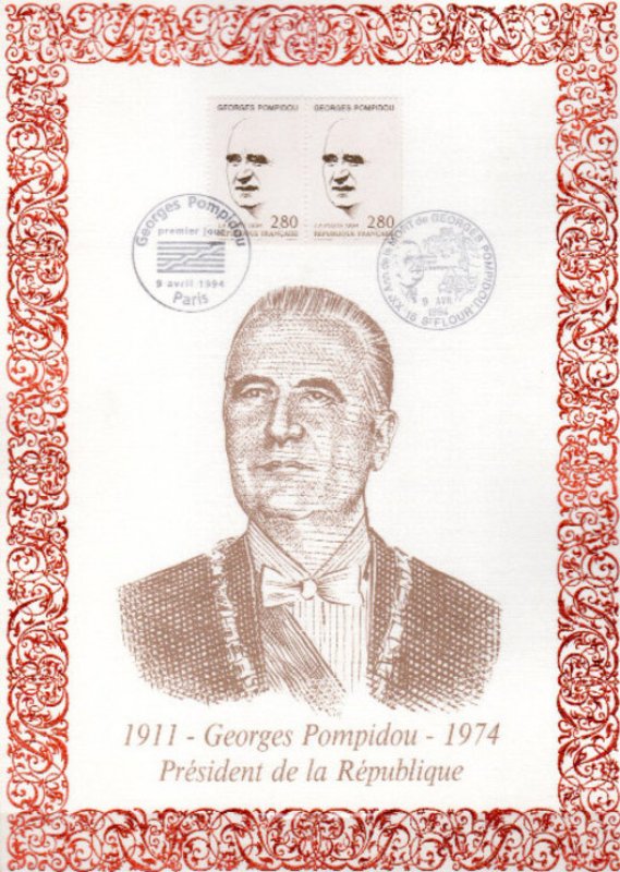 | Description | 20e anniversaire de la mort du président Georges Pompidou (1911-1974), homme d'État, né à Montboudif (Cantal) |